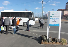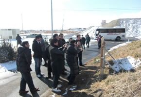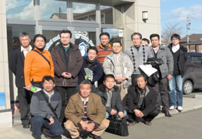 (津波パネルの前で記念撮影) 2月23日(土)AM9:25、三井住友海上 南京都の代理店さんと社員の方々12名が、1泊2日の被災地見学のため仙台空港に到着しました。 |