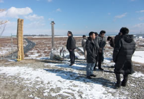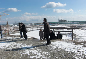 仙台市から南の地区で一番津波被害の大きかった閖上地区(約700名の方が亡くなりました)で、震災前と震災後の閖上地区のパネル見学。 |