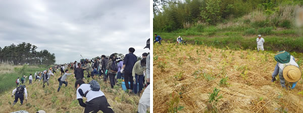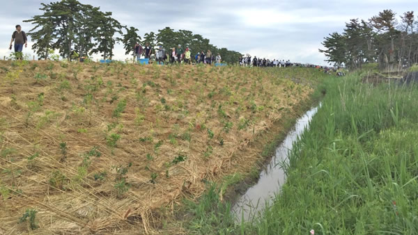 今回をもって大きな規模の植樹祭は最後となり、プロジェクトのひとつの区切りとなりますが、得た経験や知識は今後の防潮堤の見本として生かされていくとのことです。 |