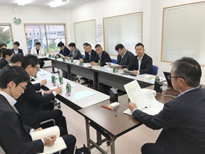 まず始めに、エス・ハート本社で震災に関するDVDを視聴いただいた上で、大規模災害に対する保険代理店の社会的使命について、意見交換会を行いました。 愛知県は南海トラフ沿岸地域にあることから、参加されたみなさんの関心の高さと、熱心さを、ひしひしと感じる意見交換の場となりました。 |