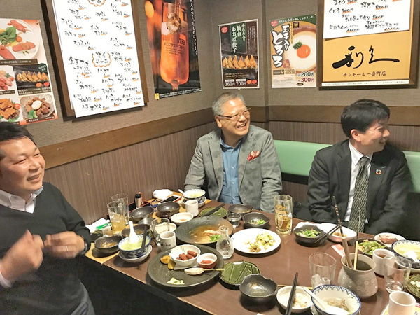 | 食通で知られた大阪の皆さんも、宮城の「牛タン」と、冬の名物「セリ鍋」に、舌鼓を打たれていらっしゃいました・・・。 |