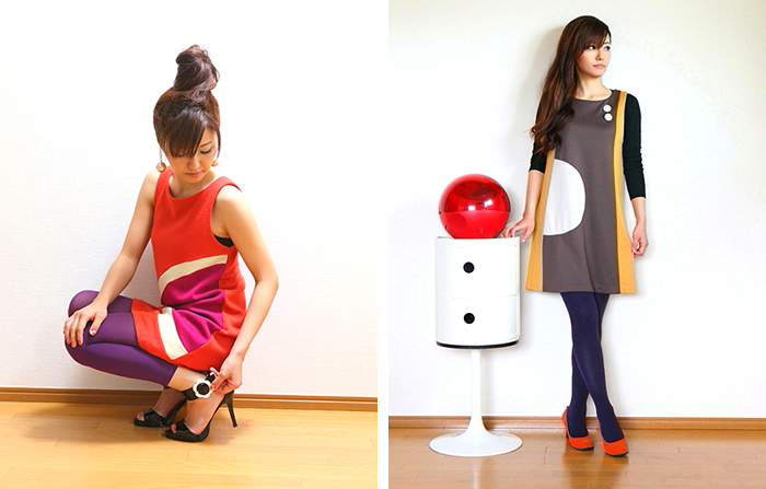 この時代のファッションは、見ているだけでもワクワク楽しくなる様な色使い、デザインで溢れているからです。