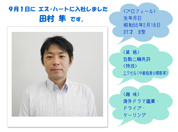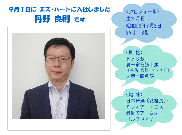 9月1日にエス・ハートに入社しました丹野 良則です。