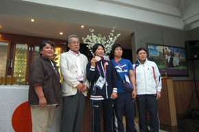 | 上野順恵選手の懇親会の1コマです。 順恵選手のご両親と最強の三姉妹です。 |