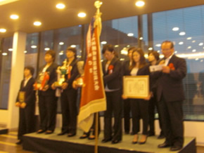 柳澤監督と選手のみなさまです。 7年ぶりの優勝で喜びも笑顔も最高でした。 |