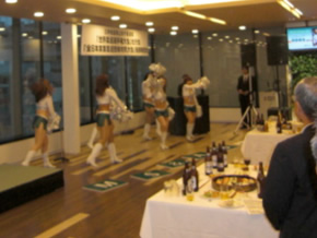 三井住友海上チアリーダーズ(ドルフィンズ)の演技です。いつも会場では選手を勇気づける応援の掛け声で盛り上げています。