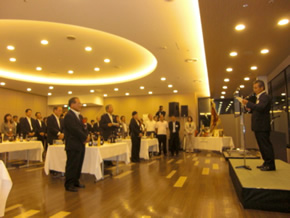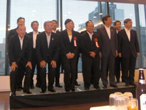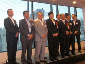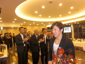 阿部 香菜選手と柳澤監督を囲んで、会社役員のみなさまとガッテンダーズ(スポーツ後援会役員)のみなさまで記念撮影です。 |