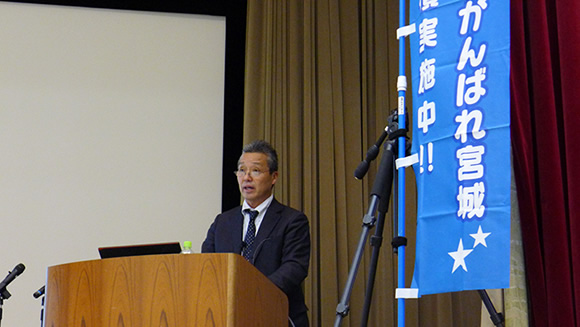 日 時 : 3月24日(月)13時~17時 会 場 : 損保会館2階会議室 次 第 ◆ 開会の辞 公益社団法人損害保険事業双方研究所 理事長 遠藤 寛 氏 ◆ 「震災を通し地震保険に思う」 一般社団法人 日本損害保険協会 東北支部事務局長 五十嵐 朗 氏 ◆ 「震災対応とその経験を踏まえた取り組みへの反映」 社団法人 生命保険協会 企画部担当部長 駒田 勇人 氏 ◆ 「東日本大震災の教訓 ~代理店の氏名と役割を考える~」 一般社団法人 宮城県損害保険代理業協会 副会長 小林 良昭 氏 ◆ 「現地調査の記録 ~引き継ぐべきスキーム~ 株式会社 損害保険リサーチ 首都1営業部横浜支社支社長 松本 康則氏 ◆ 「記者の目から見た東日本大震災」 株式会社保険毎日新聞社 取材部記者 森 隆 氏 キャプション : 宮城県代協 小林良昭副会長 |
