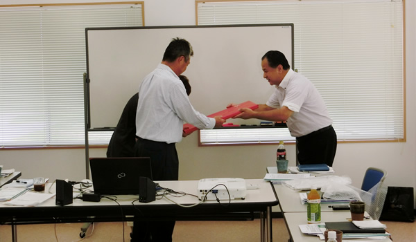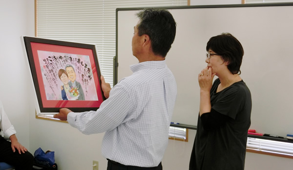 8月の営業会議にて社員全員から社長夫妻へ 30 周年の記念品をサプライズで進呈しました。 |
