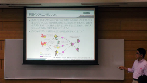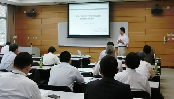 新型インフルエンザや大震災が発生した場合の業務継続について詳しく講義いただきました。 |