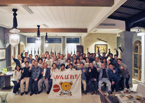 | 三井住友海上大応援団(現地の方々も)と選手・柳澤監督・貝山コーチ・山岸コーチ・大石先生・ご家族との大いに盛り上がった懇親会です。 | |