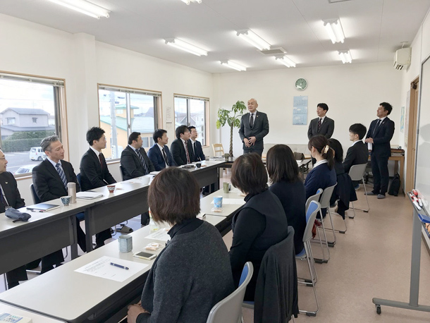 | 参拝後は、本社にて年始顔合わせ会を行いました。 その場には、三井住友海上の仙台支店長もご挨拶に来られました。 |