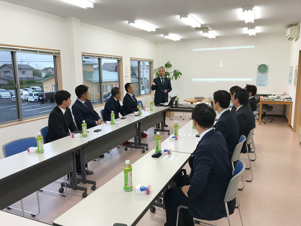 | まず始めに、震災に関するDVDを視聴いただいたあと、自己紹介を兼ねて当社ホームページをご覧いただきました。 | |