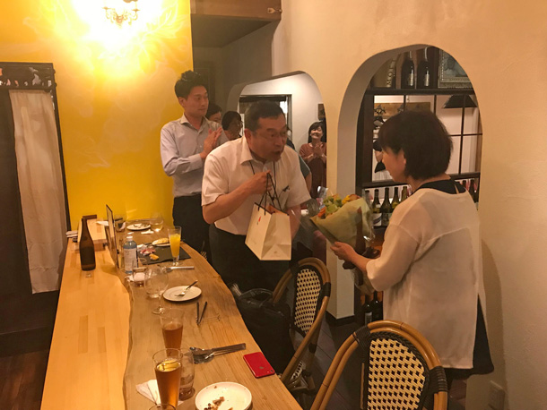 | 社員一同より感謝を込めて田中さんに記念品を贈呈させていただきました。 |