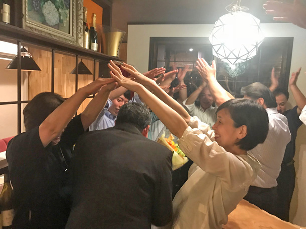 最後はみんなで、田中さんを盛大にお見送りさせていただきました。 一区切りは尽きましたが、これからも引き続き一緒に頑張っていきましょう! ロメオさん、おいしいお酒と料理ありがとうございました!! また、ご利用させていただきます!! |