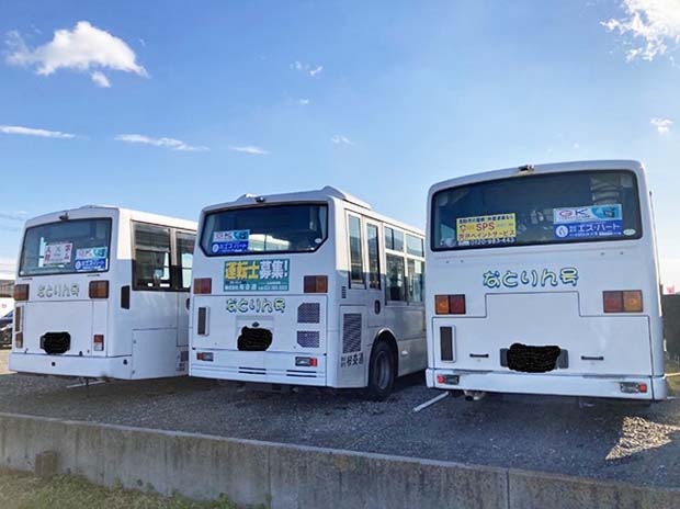 名取市の市民バス(なとりん号)15台にGK見守るクルマの保険(ドライブレコーダー付き自動車保険)のステッカーを貼らせていただいております! |