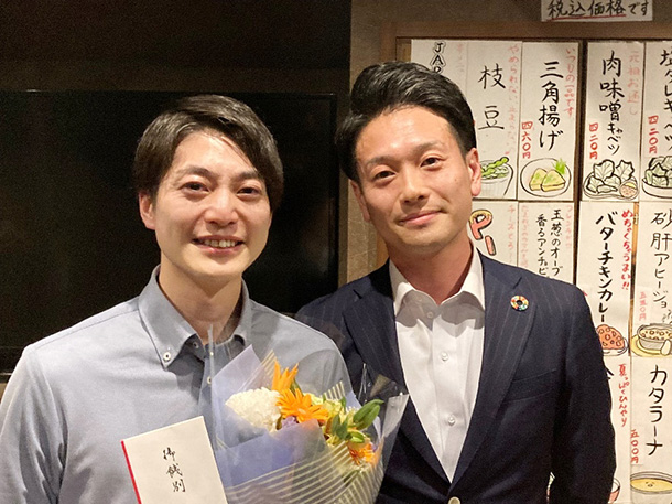 | 花束贈呈、髙橋社長とツーショット。 喜んでいただけて嬉しいです。 |